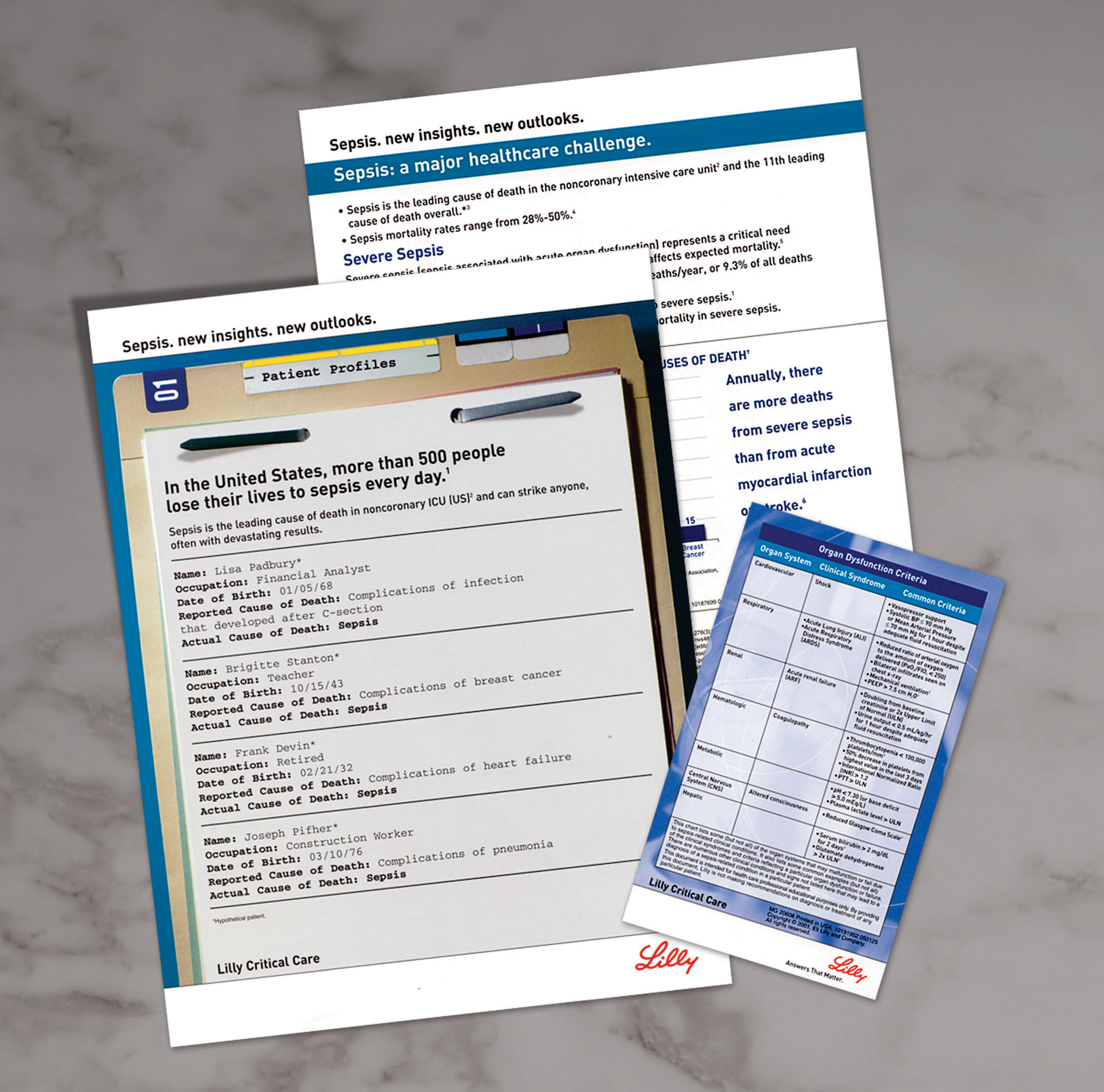 B2B Prelaunch materials for a new ICU drug (Xigris). These materials helped build awareness around Sepsis.