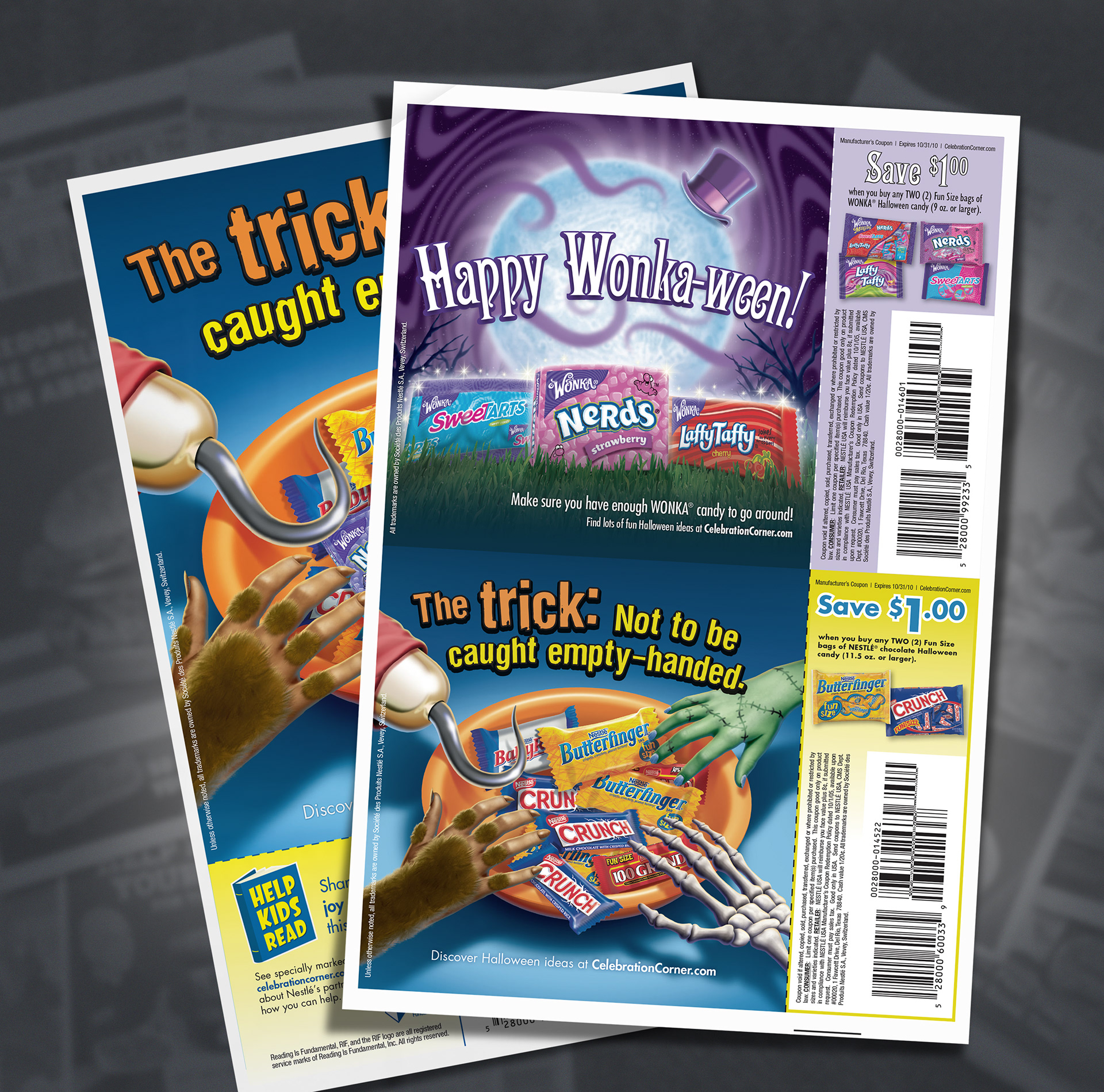These Halloween FSIs are always fun! We had a lot of good ideas, I’m glad these two concepts went forward. Special thanks to our illustrator friend Dave Aikins for bringing these to life.